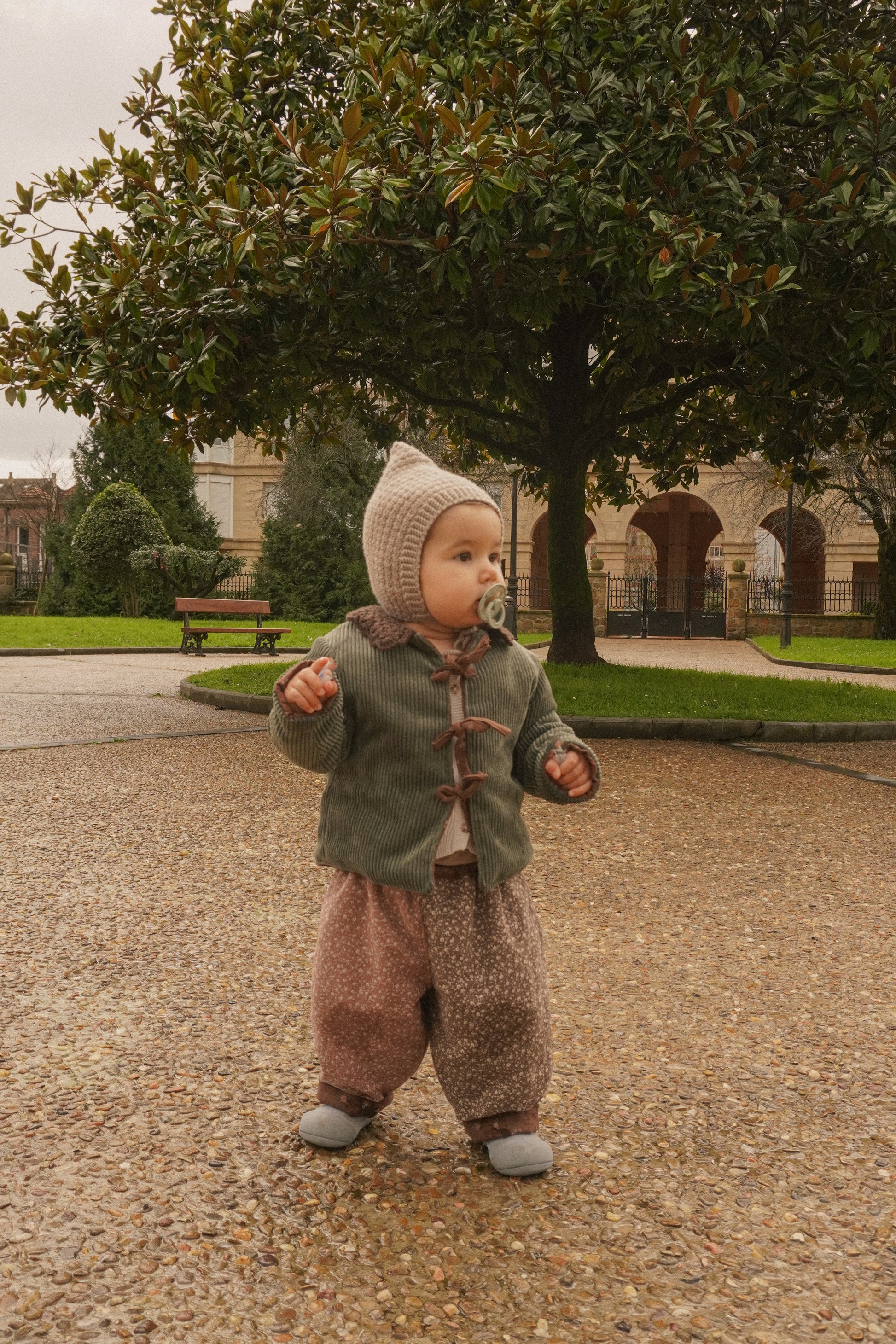 Un pantalón reversible de algodón ligero en ambos lados, pensado para acompañar los días frescos, con comodidad.